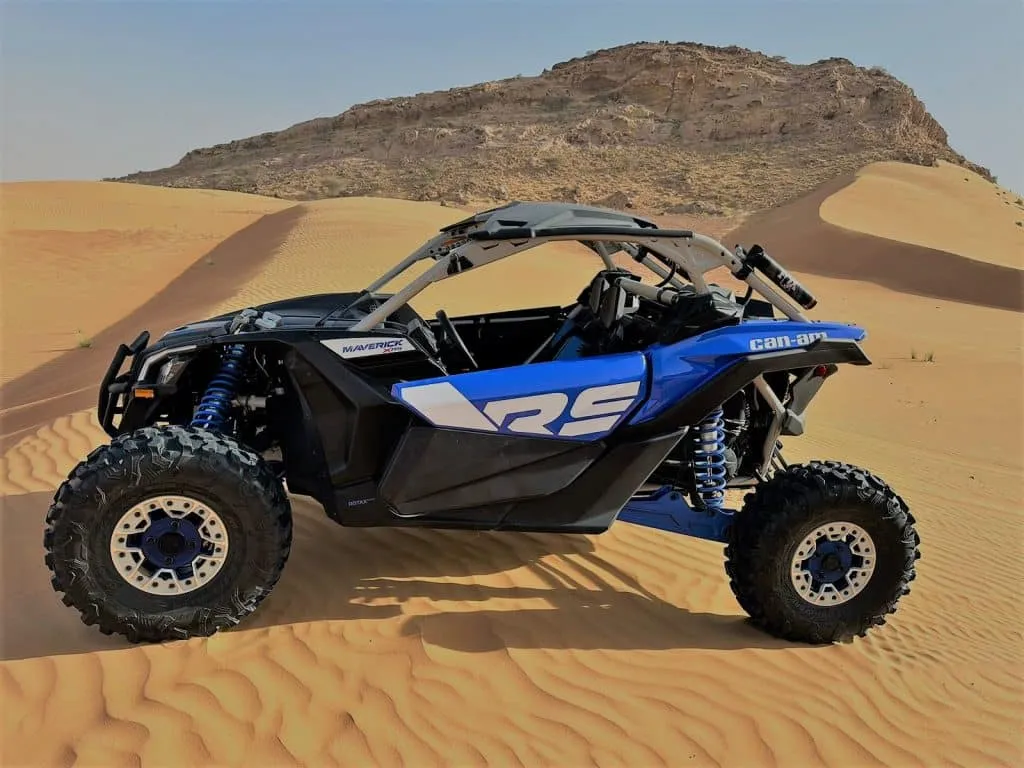 First of all, we offer a dune buggy experience in Dubai with exclusive access to our crowd-free buggy camp in Al-Badayer Desert. Here you can enjoy private and exclusive desert adventures. Moreover, our dune buggy tours in Dubai are highly flexible. Whether you’re looking for a 2-seater buggy for a couple or a 4-seater buggy for a family or group, our advanced fleet of dune buggies, including Can-Am Maverick R X RS 25, Kawasaki buggies, and Polaris RZ, will be ready to provide you with a thrilling and safe ride.